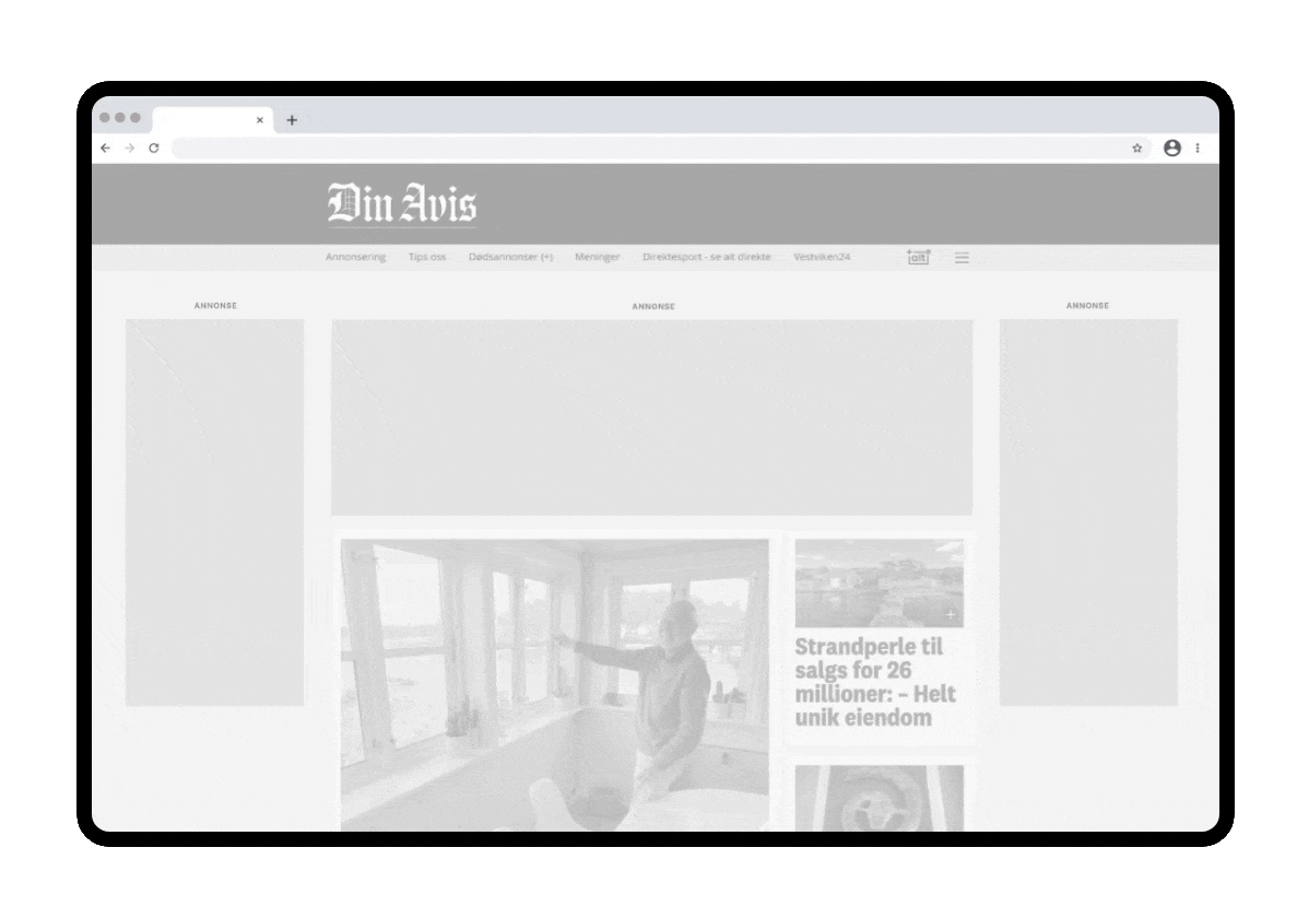 Plassering: Forside og artikkelside mobil, kun forside på nettbrett og desktop.