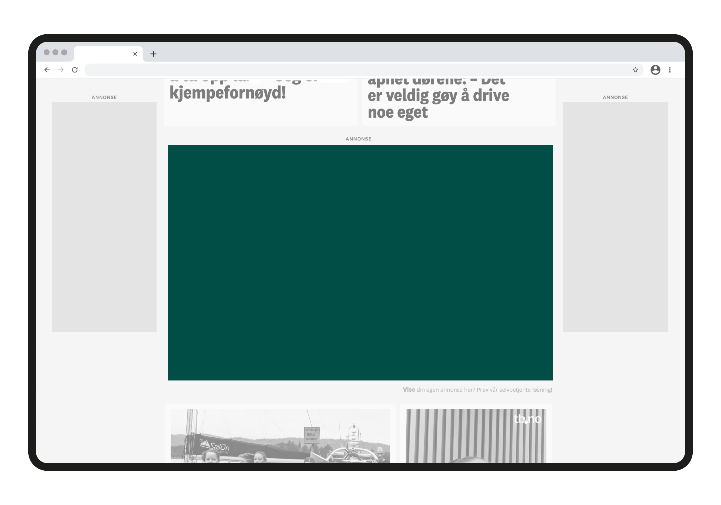 Stort midtbanner er et av Amedias mest brukte formater, og kjøpes på desktop/tablet. Formatet er synlig på avisenes forside, og egner seg veldig godt for å oppnå høy dekning.