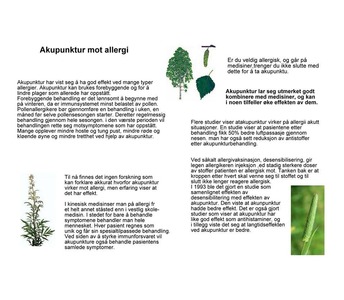 Akupunktur kan hjelpe deg med kroniske smerter, slik som migrene, muskel- og leddplager, urinveisinfeksjon, allergier mm.