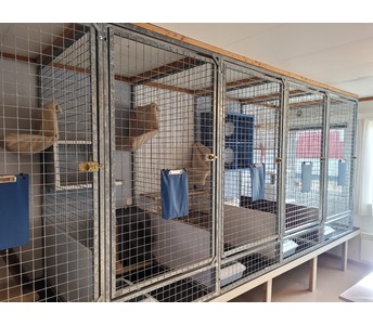 Pensjonatet består i dag av, 1 kennel del , 4 kattehus, 1 fuglehus og også en del som har plass til smådyr (kaniner, marsvin etc). Kennel delen har plass til 34 hunder. Alle får hver sin boks inne, med seng og rene tepper hver dag, og selvfølgelig tilgang til vann Katte husene har plass til totalt 45 katter, hvor alle får hvert sitt bur med klatrestativ, seng, sandkasse og selvfølgelig tilgang til mat og vann. Vi har ett par kaninbur inne og også et stort utebur med to luftegårder, som vi setter ut på plenen om sommeren. Alle burene er helt trygge, slik at ingen dyr kommer seg ut.
